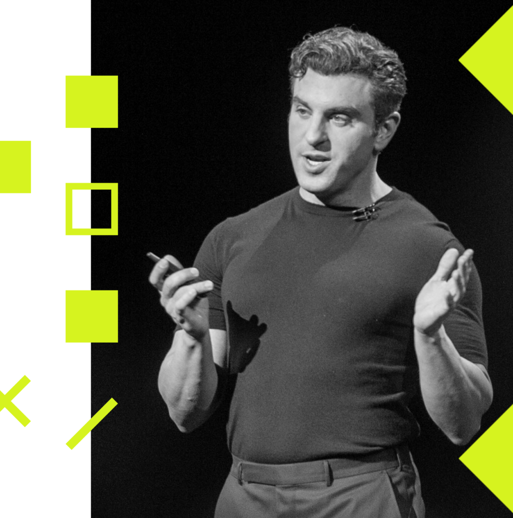 The story, just the short version, started 17 years ago when we hosted three guests that first weekend, and that really inspired the creation of this company. Something remarkable happened. These three strangers came into our home and we rented our space to them, but we also hung out with them all weekend. And as we’re waving them goodbye, I remember Joe [Gebbia] and I — we were roommates — were thinking there was a bigger idea here, but the bigger idea was not merely just renting your space. The bigger idea was what happens when strangers come together, and what if you could build this people-to-people marketplace where people could share not only their home but every part of their lives. And years later, once Airbnb took off, people asked me, “Well, what’s next for Airbnb? You’ve already monetized people’s biggest asset, their home. What’s next, their car?”