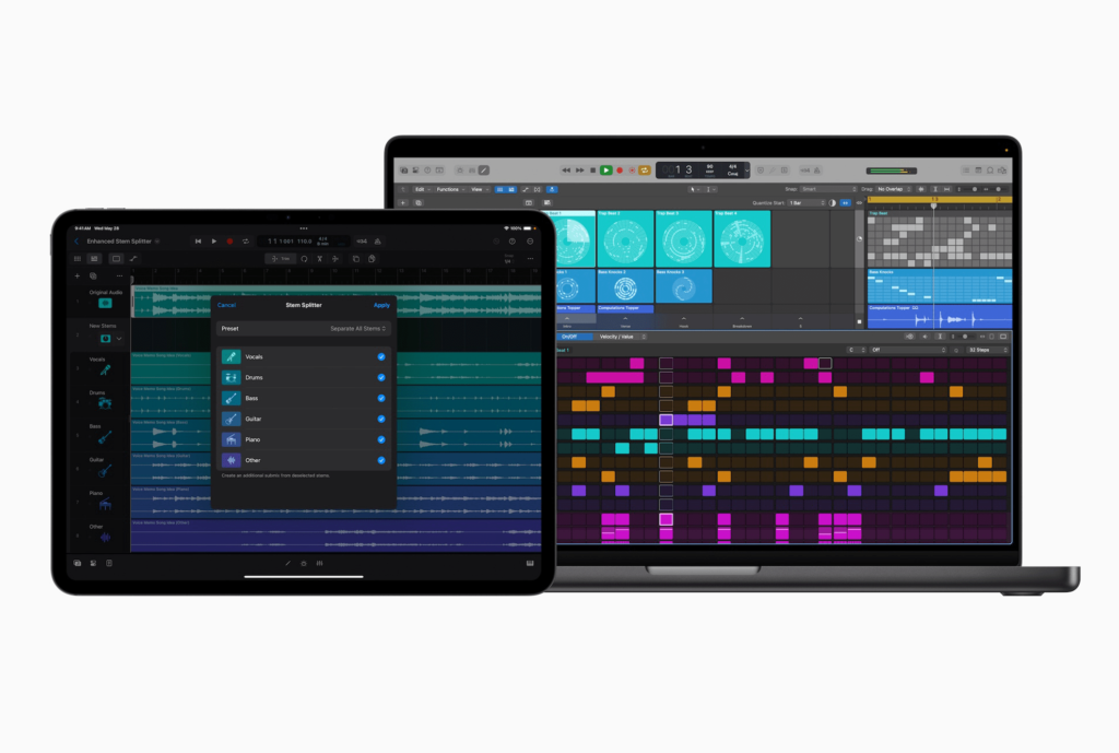 In addition to Flashback Capture, Apple says it also improved the quality of audio extracted by Stem Splitter, a feature introduced last year that uses AI to split instruments from a recording into separate tracks for each category of instrument. The company has added support for guitar and piano, as well as the ability to export only specific parts of audio, like when removing vocals to create instrumental tracks or taking out drum and bass to make it easier to remix a song.