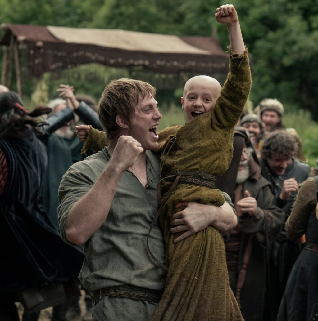Based on Martin’s Tales of Dunk and Egg novellas set about a century before the events of Game of Thrones, A Knight of the Seven Kingdoms tells the story of Ser Duncan “Dunk” the Tall (Peter Claffey) and his young traveling companion, Egg (Dexter Sol Ansell). Because Dunk is a hulking mountain of a man armed with a longsword, people are loath to pick fights with him as he journeys through Westeros’ countryside. But the man’s clumsiness and soft-spoken nature make it easy for others to dismiss him as a simpleton when he tells them that he’s a knight of the realm.