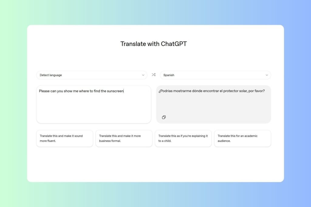 ChatGPT Translate allows users to direct the style of translated text, such as ‘more fluent’ and ‘academic.’