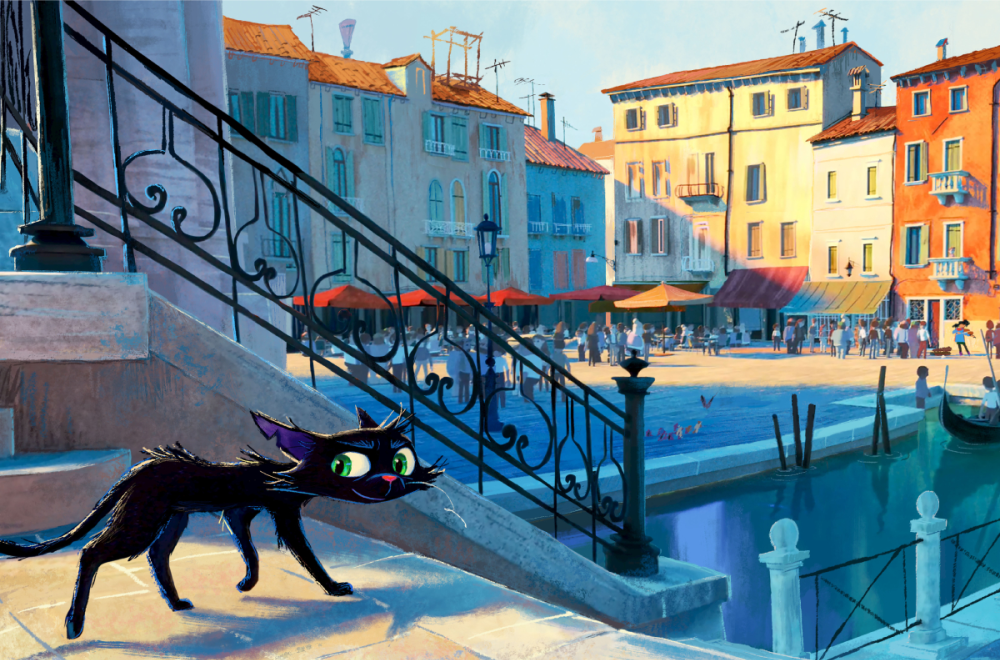 While Disney and Pixar opened their Annecy presentation with more details about their next movie, Elio, and gave updates about Toy Story 5, the studio surprised festival goers by announcing that Luca director Enrico Casarosa and producer Andrea Warren are working on a new film due out in 2027. Titled Gatto, the movie will tell the story of a music-loving black cat living in Venice who bonds with a young human girl as he tries to disentangle himself from the city’s feline crime scene. According to Deadline, Gatto will feature a “a distinct, unique hand-painted” aesthetic that looks like nothing Pixar has ever produced before.