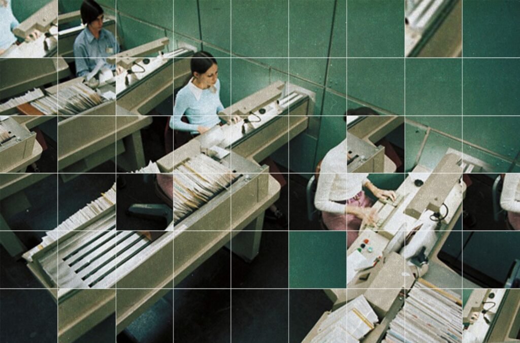 The Transorma multi-position letter sorting machine measured 13 feet high and was split across two levels. It carried mail on a conveyor belt from its lower level to a group of five postal workers at the upper level. The clerks would then use a keyboard to enter information about their destination. Based on the inputted information, the machine would then transport letters to different trays and drop them into chutes that brought them back to the lower level. But as the volume of mail increased in the years after World War II — going from 33 billion pieces of mail per year to 66.5 billion between 1943 and 1962 — the USPS needed a way to keep up.