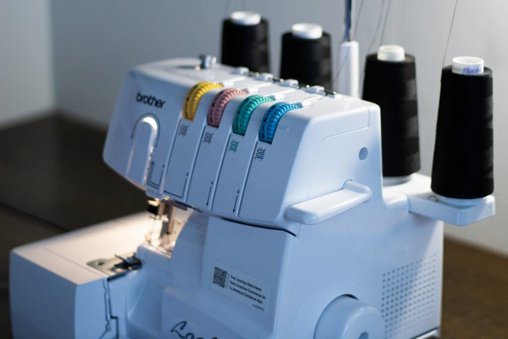 A serger, also known as an overlocker, is a type of sewing machine generally used in apparel making. It has two needles and uses up to four strands of thread at a time to create the loops and finished edge you see on the inside of most knitwear, like T-shirts and leggings. It also has a knife that cuts the edge of your fabric at the same time, so the finished product looks clean and professional.