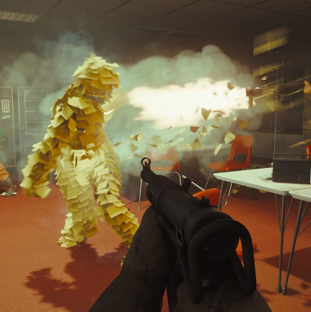 It was a chaotic mess (in a good way), but as with Control, what struck me most about Firebreak was the world itself. It’s just so delightfully weird, infusing a bland office space with a sinister tone. Office cubicles become cover in shootouts, while those sticky notes are like an invasive species, smothering everything — including you, if you can’t make it to a shower in time. Unlike Control, however, Firebreak is reliant almost entirely on its world to tell the story. There are no cutscenes to watch or audio logs to uncover. Instead, you sort out what’s happening by being in this place, and both listening to the little bits of chatter between characters and observing the state of the Oldest House. Or you can try to suss it out anyways, but I’m still not sure why a giant rubber duck started following me in one level.
