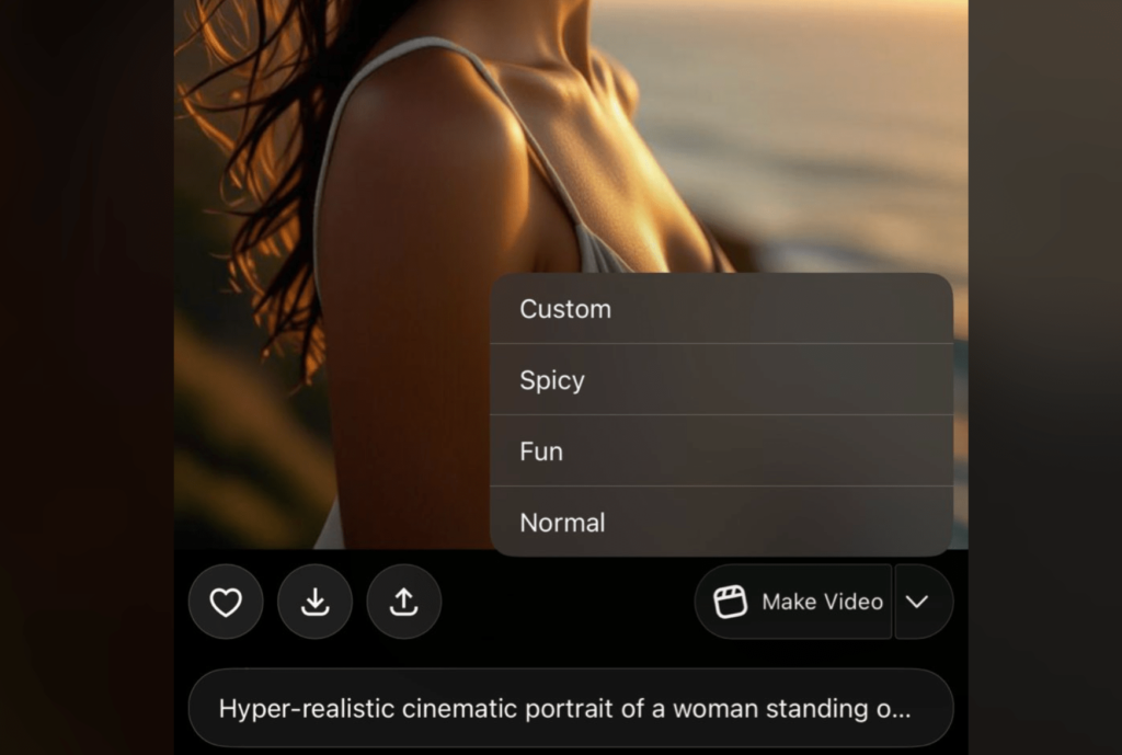 The image generation is less restrictive. Users can generate a variety of styles, including photorealism, anime, and illustrations, and it features a voice mode that allows prompts to be spoken rather than typed — something that children would love interacting with, according to xAI CEO Elon Musk. Video generation is based on the reference image uploaded by the user, and there are four modes to direct how it will be animated: Custom, Normal, Fun, and Spicy.